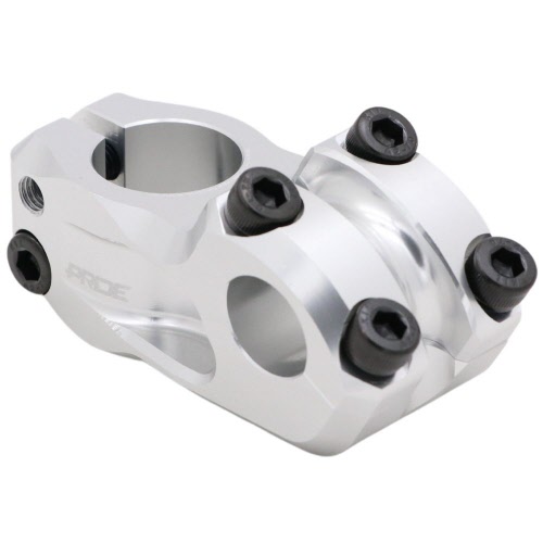The Pride Racing stem is designed for use in BMX racing. It is not a TopLoad, not a FrontLoad, the FTL is represented as a Front/Top Load stem. A part made under the request of a Pride Racing Top Rider, Renaud Blanc. This stem allows you to lower your riding position to make the bike even more responsive and playful. With its very low rise, it has a flat surface on the underside of the stem, to avoid hitting the top tube of the frame during a crash. The stem is made from 6061-T6 Aluminium, CNC machined in one piece.
